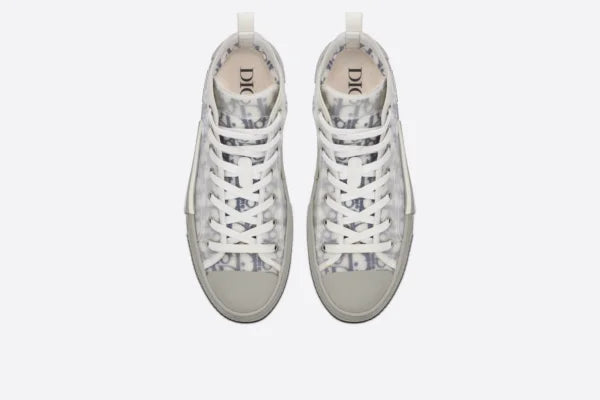 The B23 League high-top sneaker is set apart by its layering of transparent paneling and white and black Dior Oblique canvas. Essential details, such as eyelets and a lace-up front, a white rubber sole, a rounded and reinforced toe as well as a rear tab recall the codes of the classic high-top style. The sneaker is further enhanced with contrasting details on the sides, including a Dior signature, and pairs easily with any casual outfit.