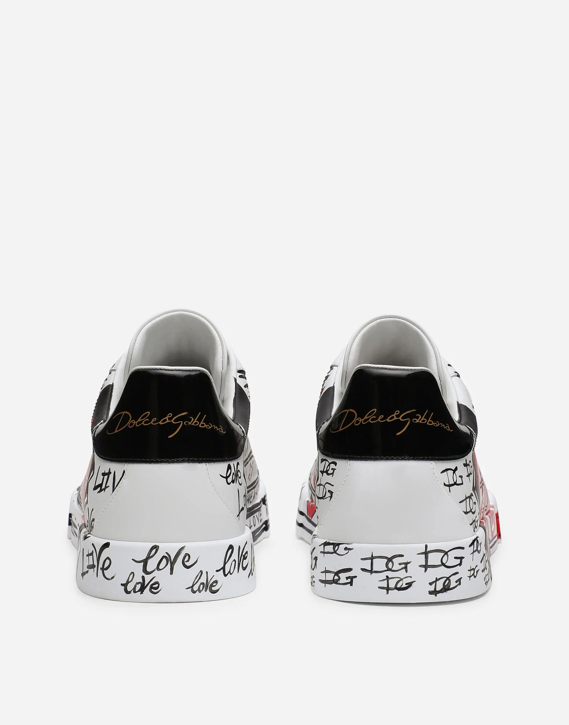 Portofino line sneakers in calfskin nappa with Dolce&Gabbana logo on the heel.