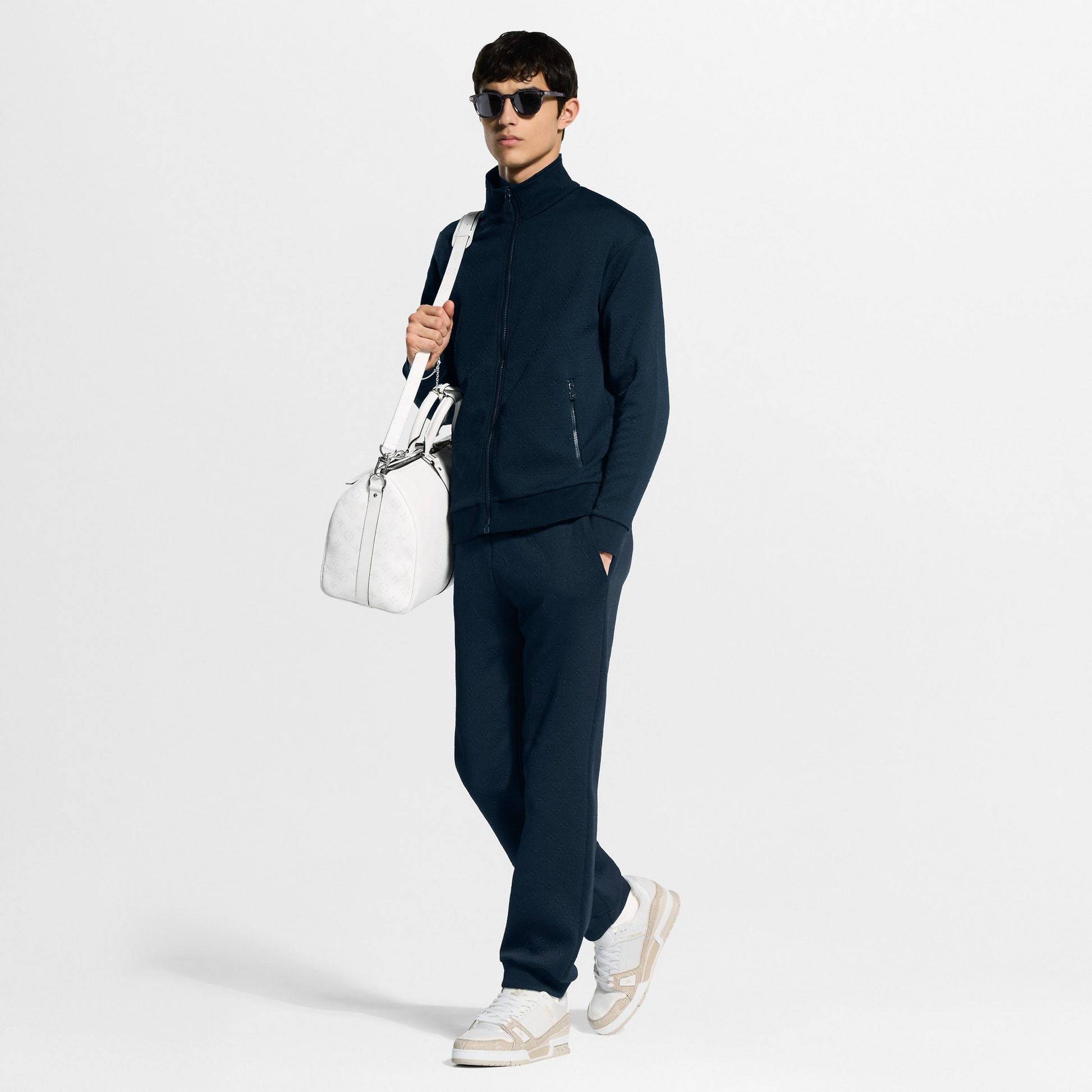 This edition of the LV Trainer sneaker in Monogram grained calf leather and plain calf leather coordinates with the Monogram Heritage theme, spotlighting historical colors and designs. The two-tone palette highlights the elaborate construction of the upper, inspired by vintage basketball sneakers. This model is mounted on a technical rubber outsole.