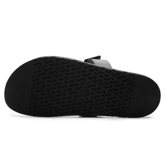 ✔️ Luxurious textured black leather ✔️ H- cut design for an iconic silhouette ✔️ Velcro fastening for a customized fit ✔️ Cushioned sole for all- day comfort and stability